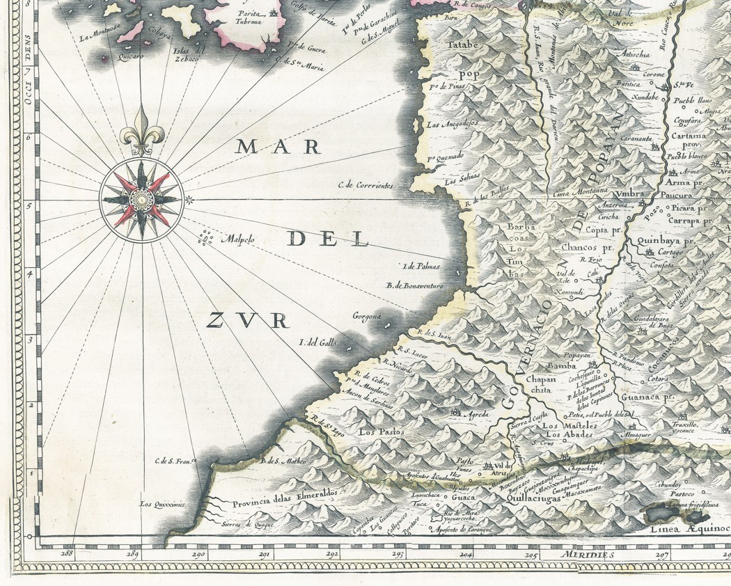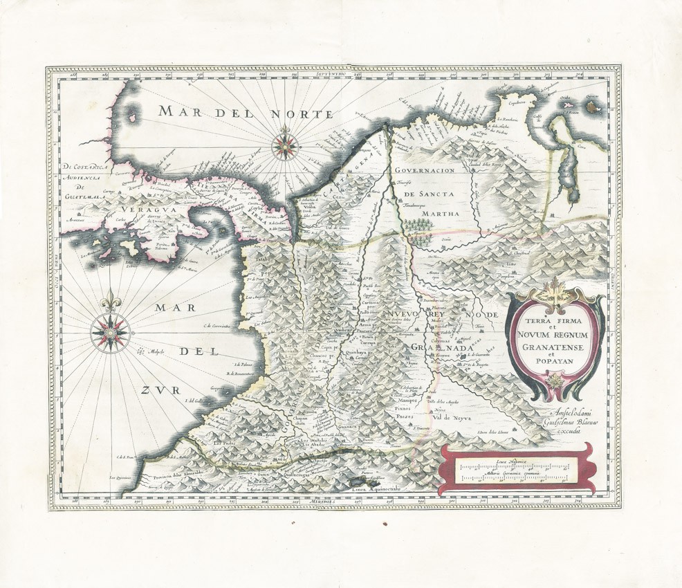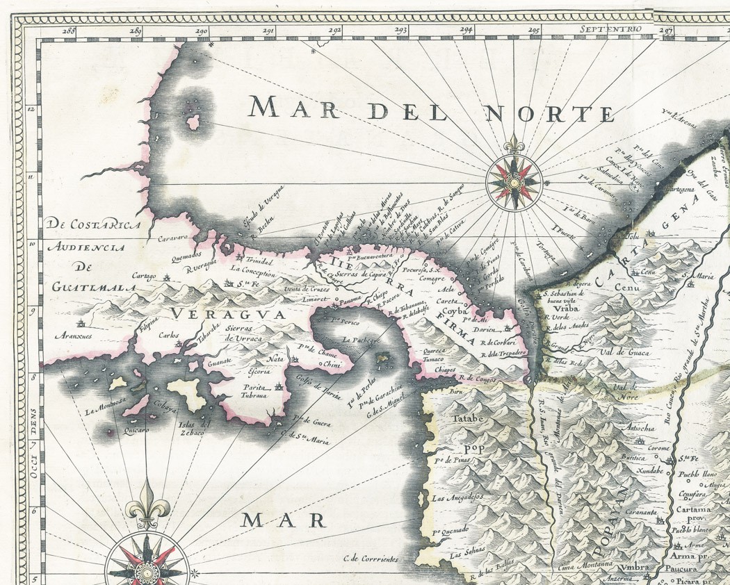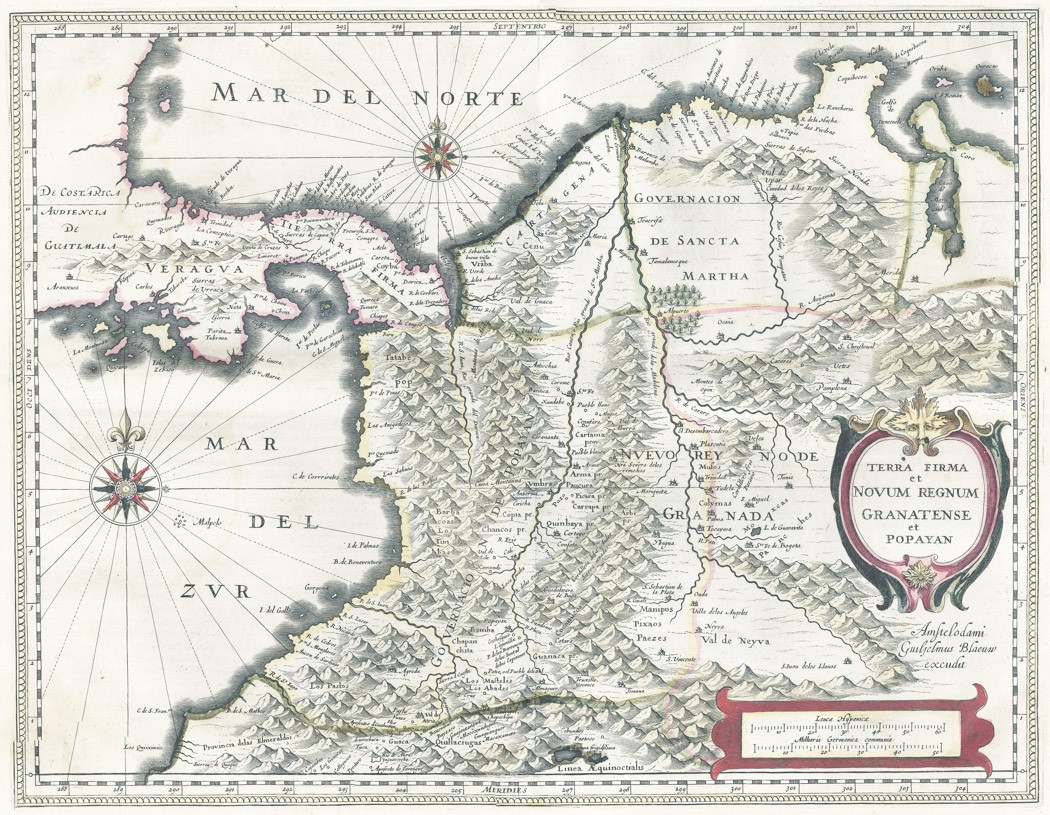 - mapa Panamské šíje a severozápadní části Jižní Ameriky, včetně většiny dnešní Kolumbie a části Venezuely. Terra Firma je Panama, Veragua je Kostarika, Popayán na západě a Nuevo Rey Node Granada na východě označuje hornatou Kolumbii.