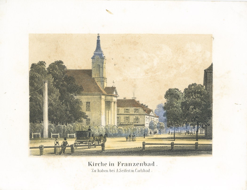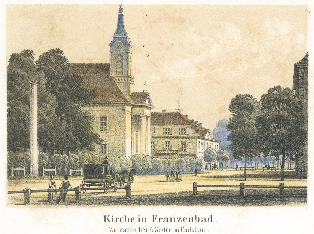 Františkovy lázně kostel, litografie, (1860)