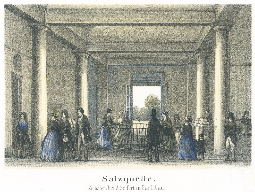 Karlovy Vary Salzquelle, kolor. litografie, (1860)