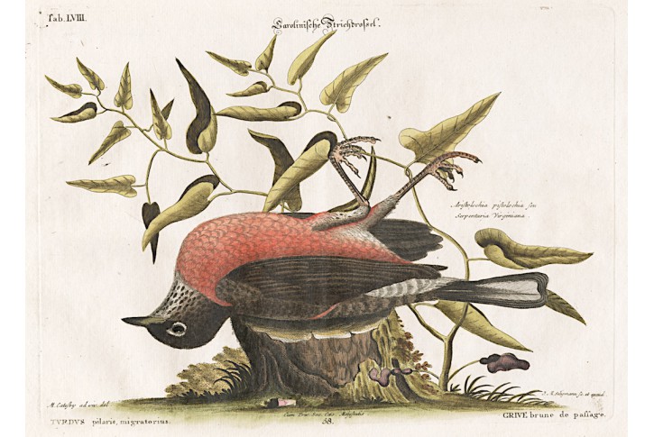 Drozd stěhovavý , Seligmann, kolor. mědiryt, 1760