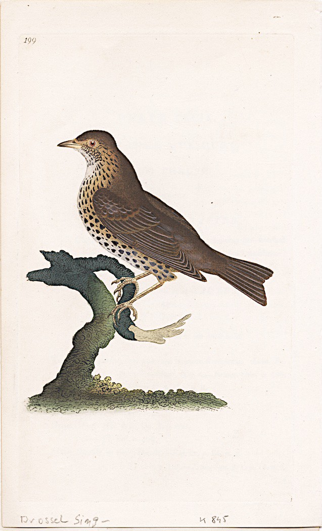 Drozd zpěvný, Donovan, kolor. mědiryt, 1797