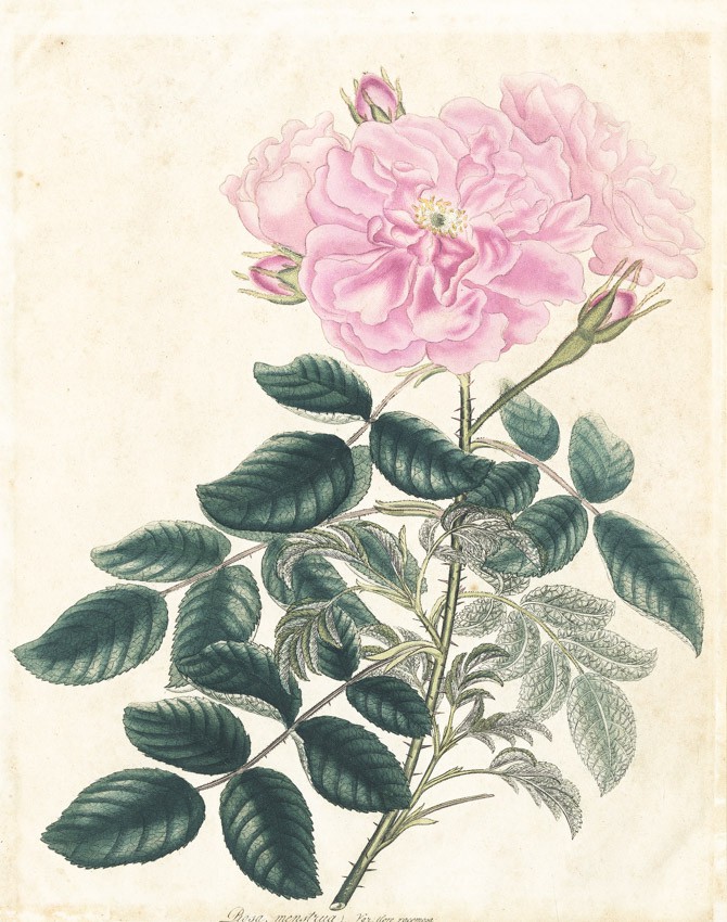 - z díla: A monograph of the genus Rosa : containing coloured figures of all the known species and beautiful varieties, drawn, engraved, described, and coloured, from living plants. by Andrews
