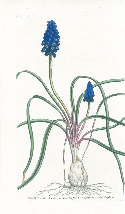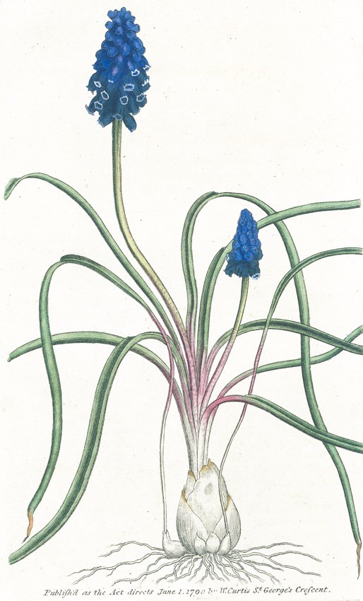 Modřenec hroznatý, Curtis, mědiryt, 1790