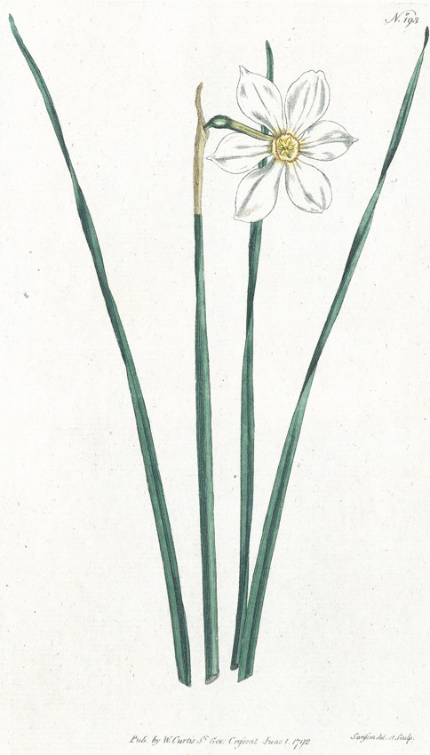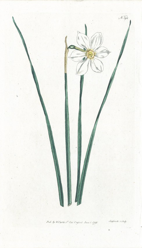 Narcis bažantí oko, Curtis, mědiryt, 1792