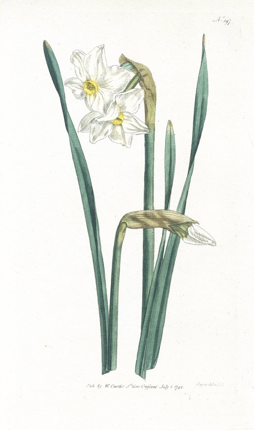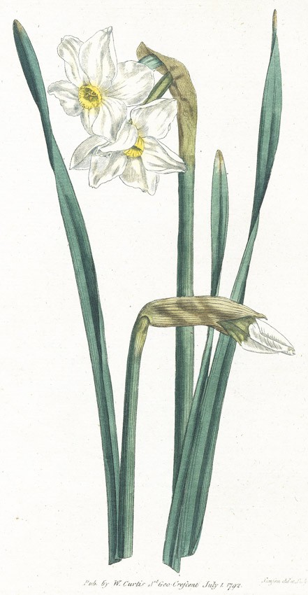 Narcis dvojkvětý, Curtis, mědiryt, 1792