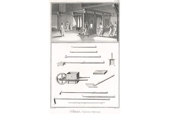 Sklo výroba XVIII., Diderot, mědiryt , (1780)