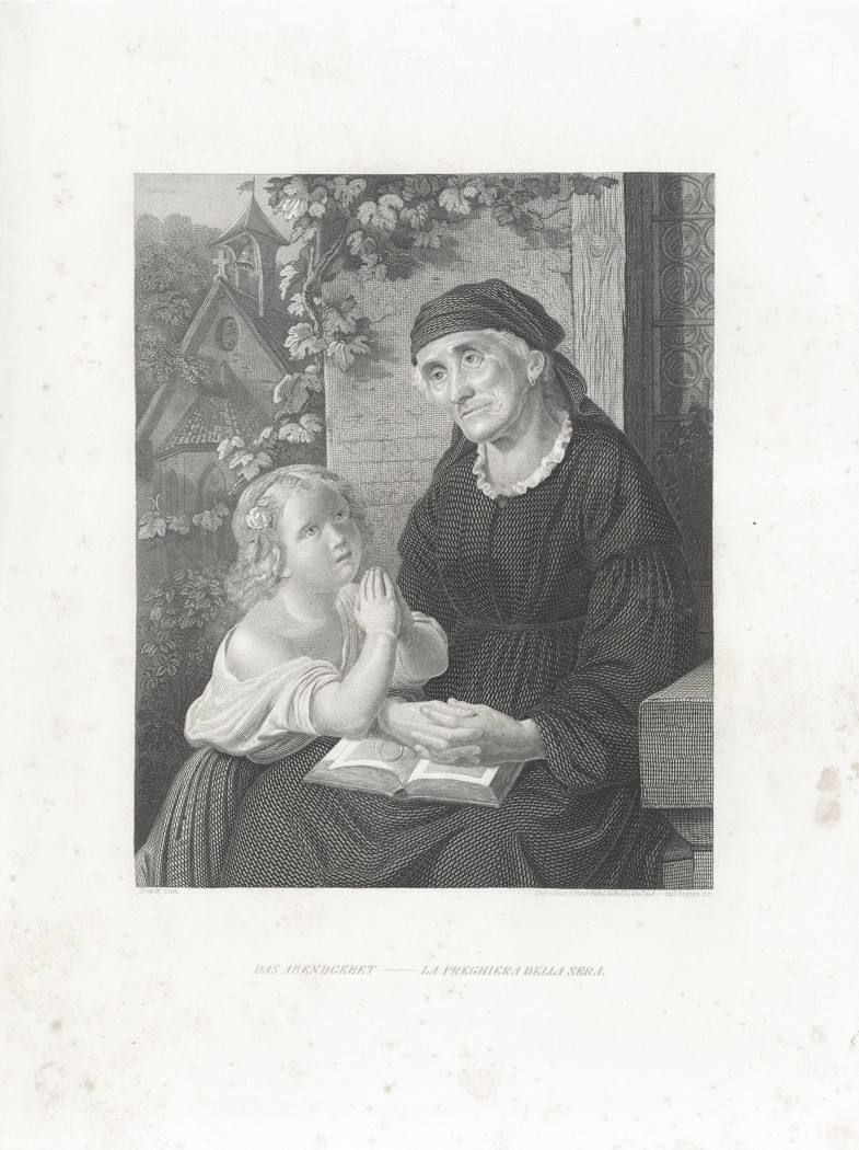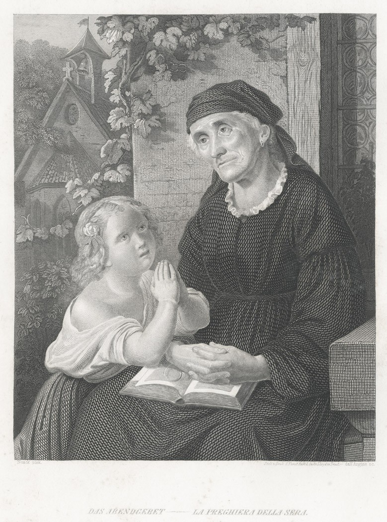 Večerní modlitba, Lloyd,, oceloryt, (1860)