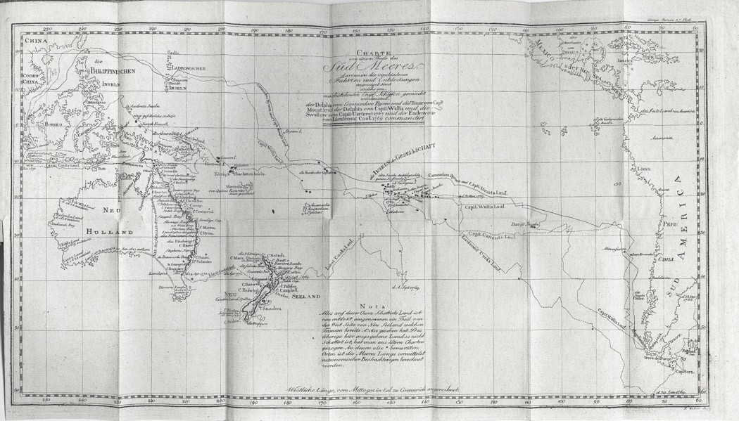 - počet stran: 300 str., Frontispis (mědiryt) a sklaádanánmapa Jižních moří o rozměru 46,5 x 26,5