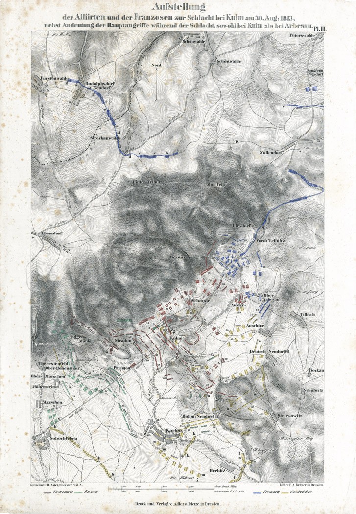 - Aufstellung der Alliirten und der Franzosen zur Schlacht bei Kulm am 30. Aug: 1813, nebst Andeutung der Hauptangriffe während der Schlacht, sowohl bei Kulm als bei Arbesau