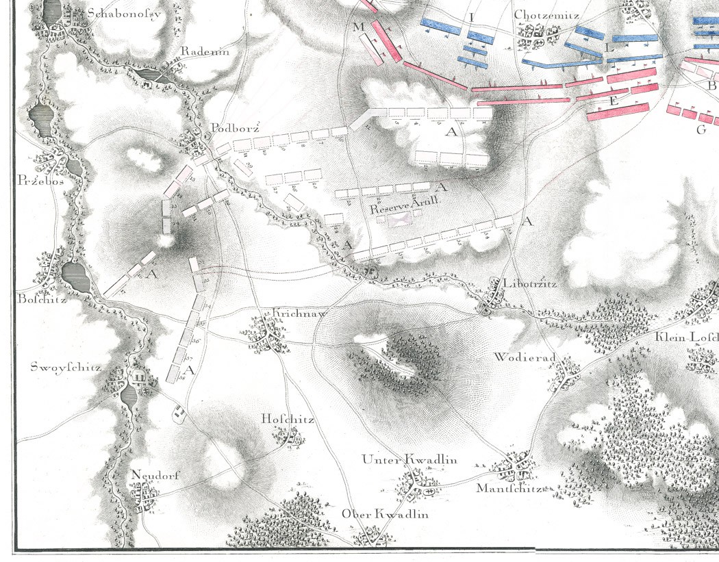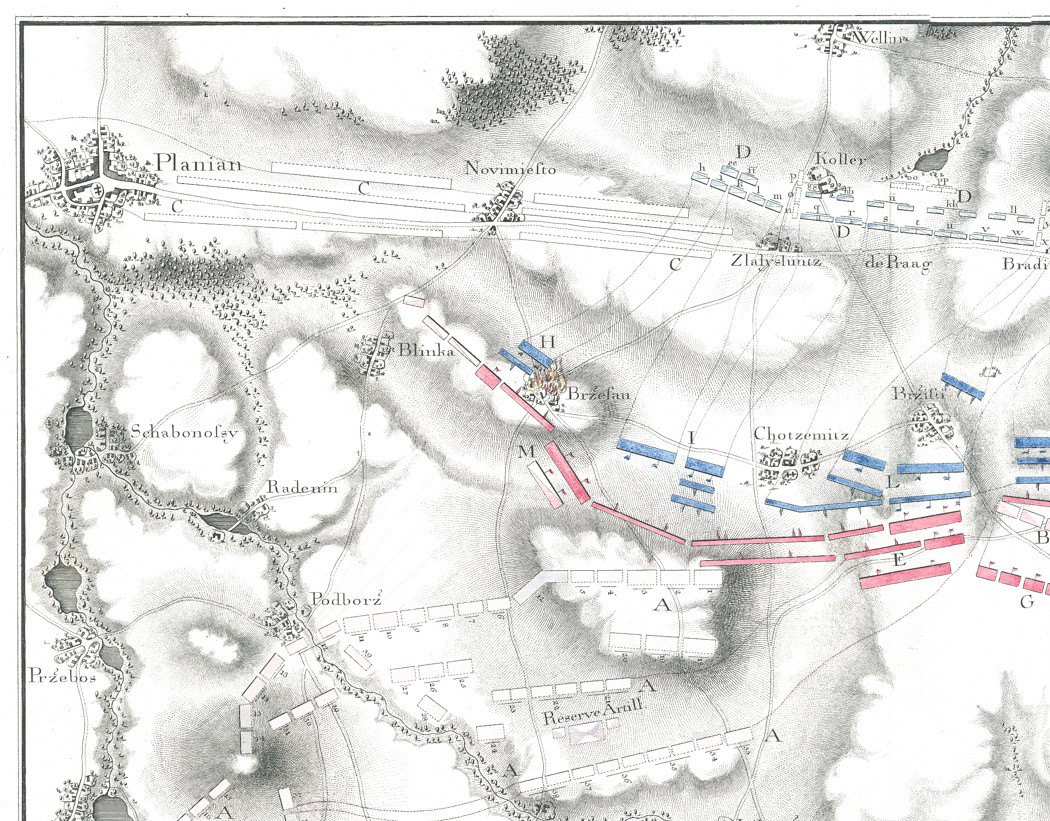 Kolín Plaňany, bitva plán, mědiryt 1779