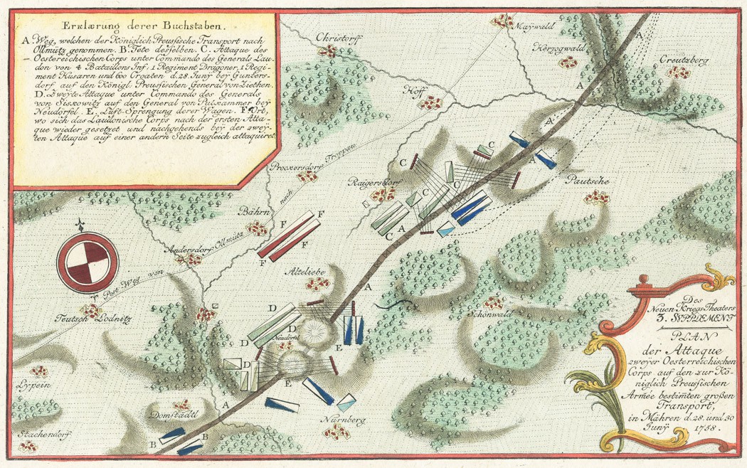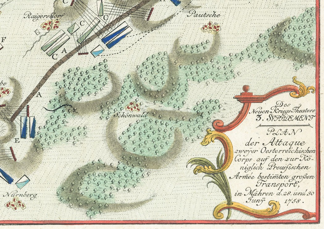 - Der Neuens Kriegs Theaters 3. Suplement. Plan der Attaque zweyer Oesterreichischen Corps auf den zur Königlich Preussischen Armee ... Grossen Transport in Mähren d. 28. und 30. Juny 1858