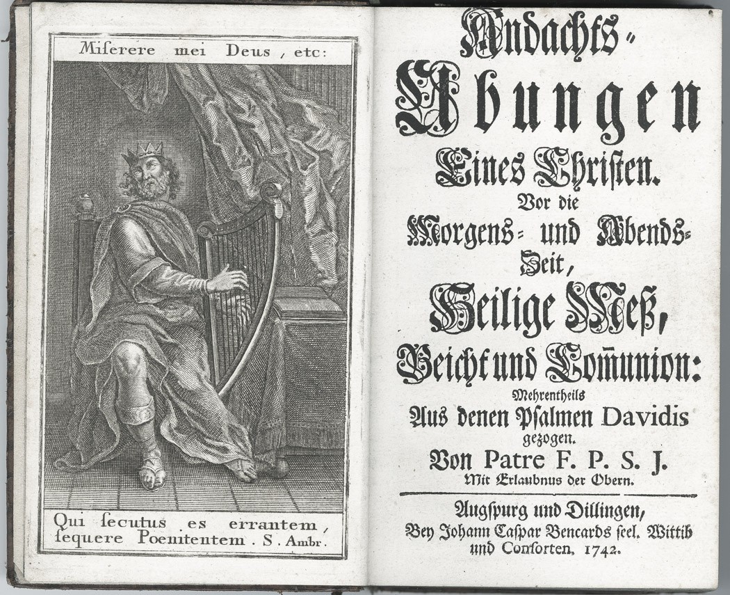 - název: Des Bettenden Christen Fünfte Geistliche EinsamkeitAndacht-Ubungen eines Christen vor die Morgens und Abends zeit, heilige MeB, beicht und Communion mehrentheils aus denen Psalmen Davidis gezogen