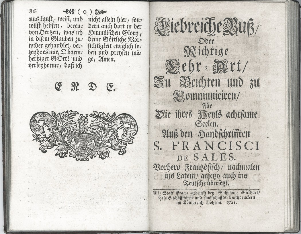 - přívazek : Liebreiche Buß/ Oder Richtige Lehr-Arth Zu beichten und zu communicieren, vor die ihres Heyls achtsame Seelen : Auß denen Hand-Schrifften S. Francisci De Sales