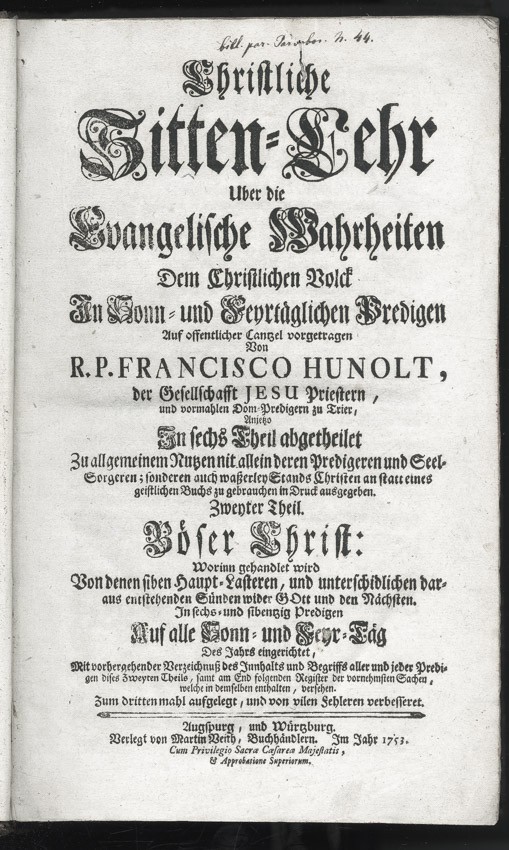 Hunolt : Christliche Sitten-Lehr II., Augs. 1753