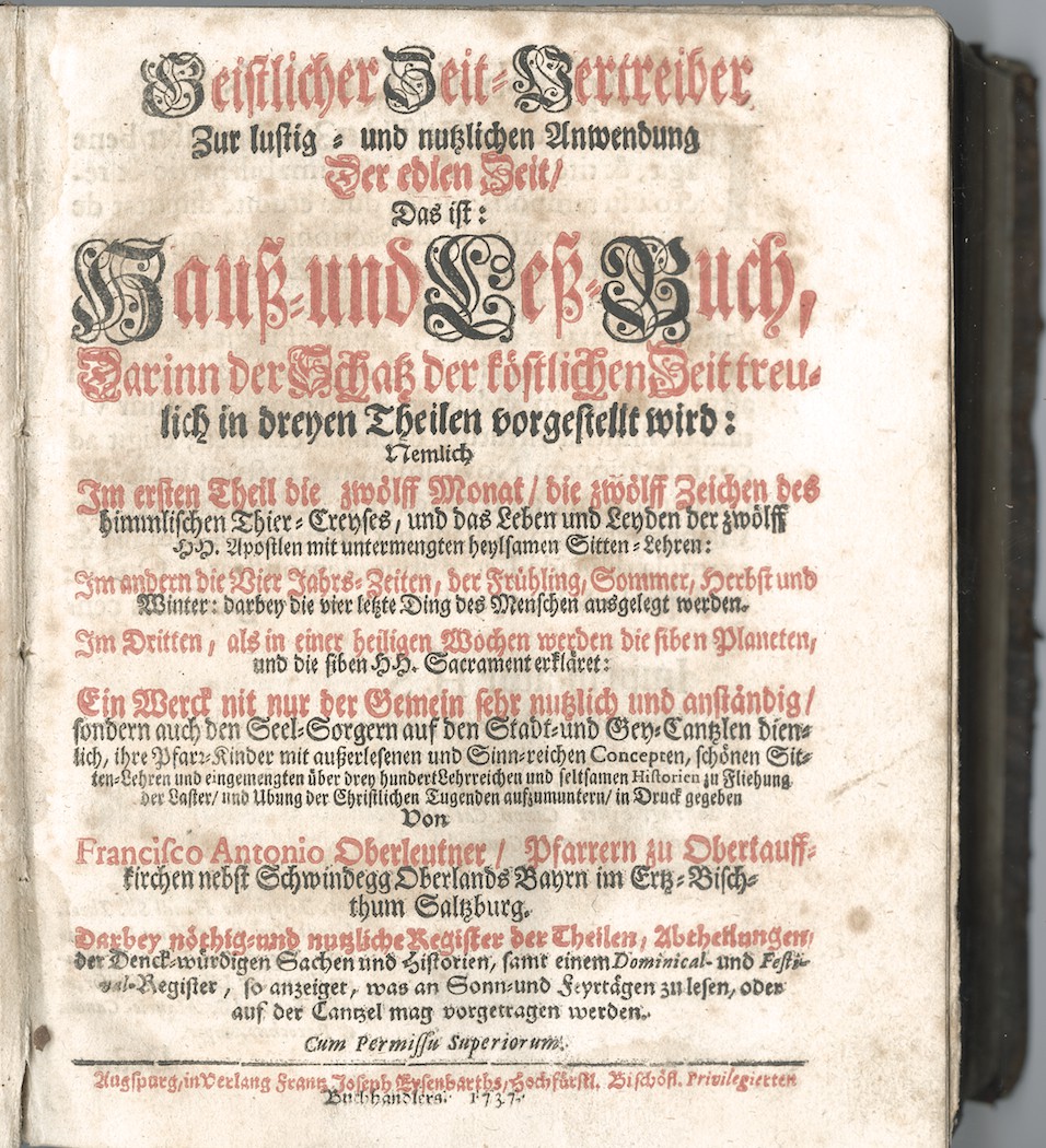 - název: Geistlicher Zeit-Vertreiber Zur lustig- und nutzlichen Anwendung Der edlen Zeit , Das ist: Hauß- und Leß-Buch, Darinn der Schatz der köstlichen Zeit