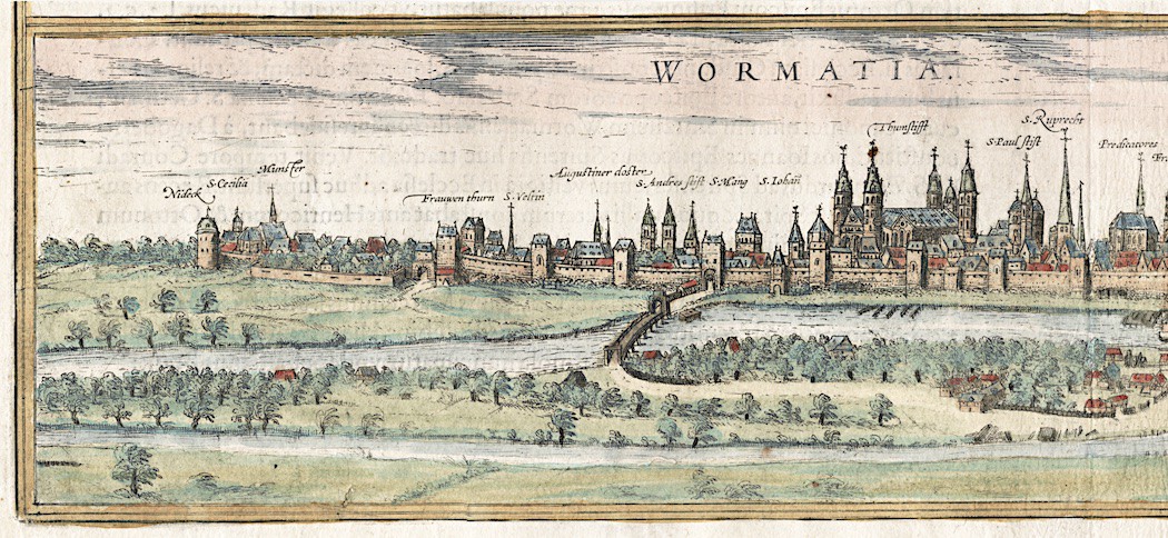 Worms, Braun Hoge.., kolor. mědiryt (1580)