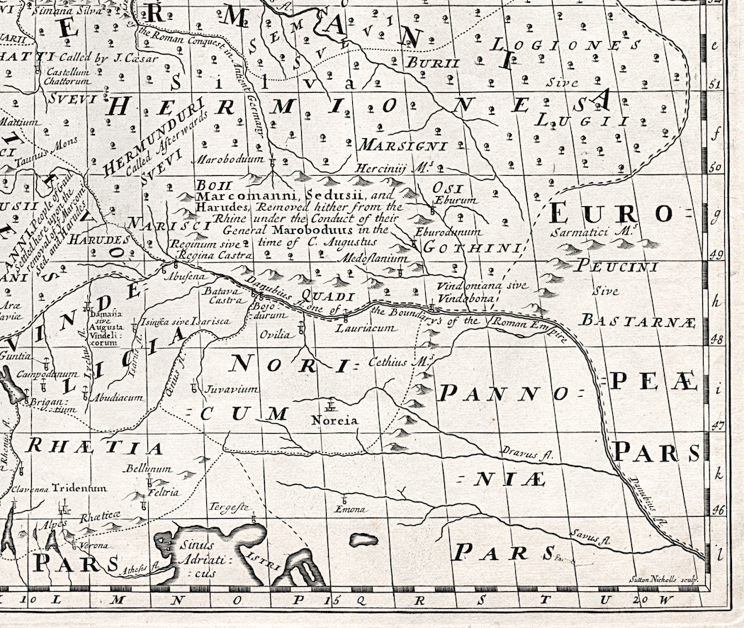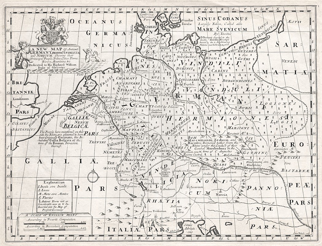 - A New Map Of Antient Germany, Rhætia, Vindelicia, and Noricum. Shewing their Principal People, Tribes, Cities, Towns, Rivers, Mountains, &c.