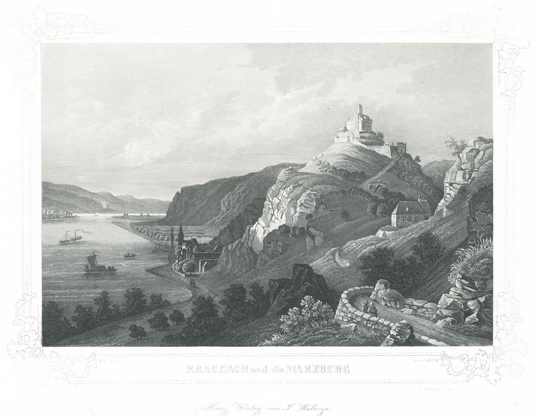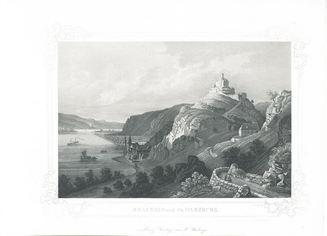 Braubach a Marxburg, Halenza, akvatinta, (1840)
