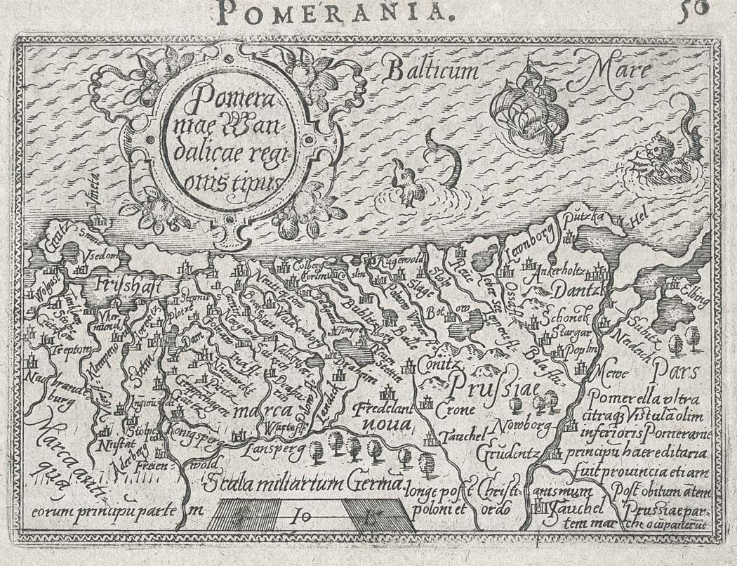 Pomerania, Ortelius miniatur, mědiryt, 1598