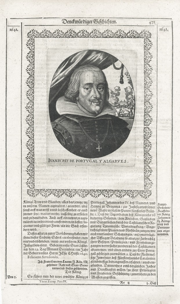 Ivan IV. Portugalský král, Merian, mědiryt 1643