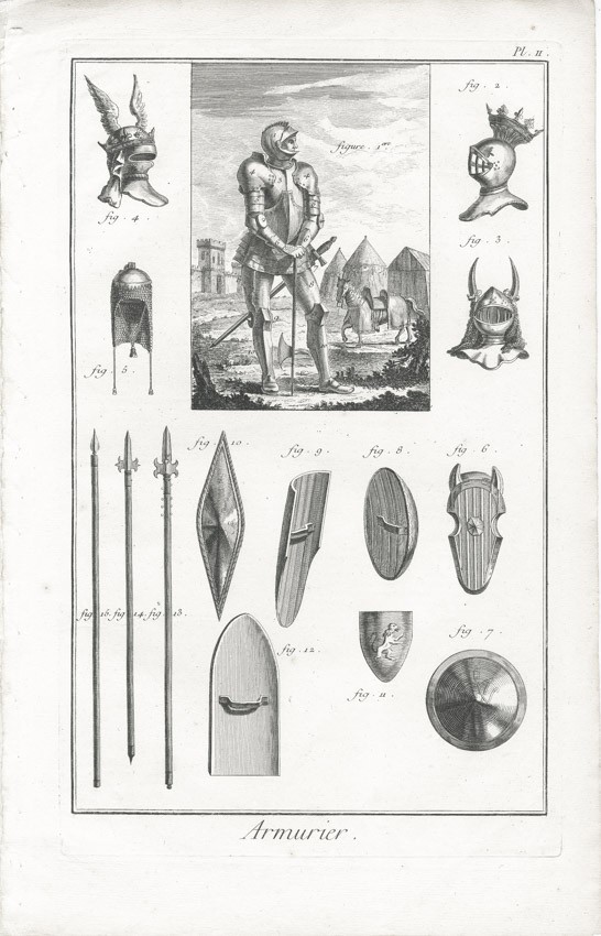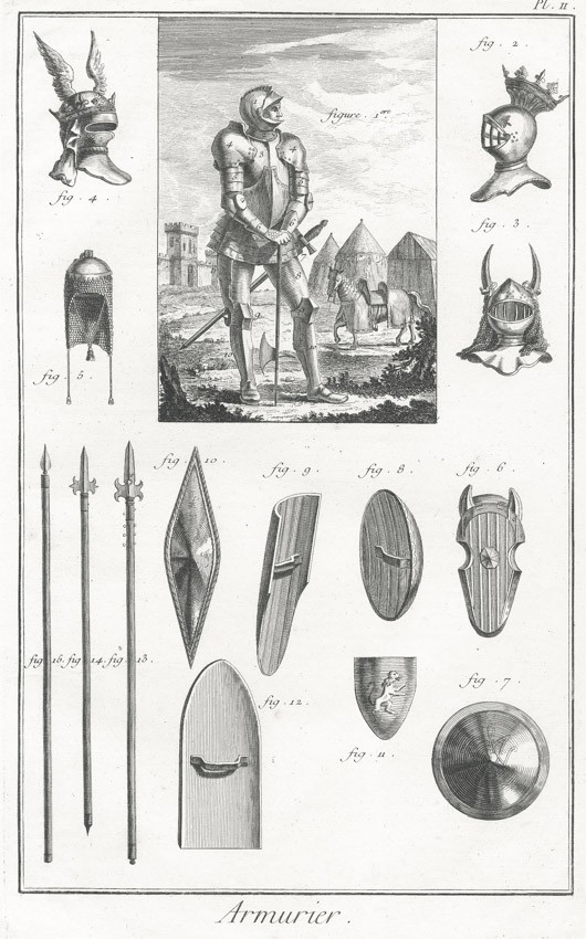 Zbroj brnění, Diderot,  mědiryt , 1782