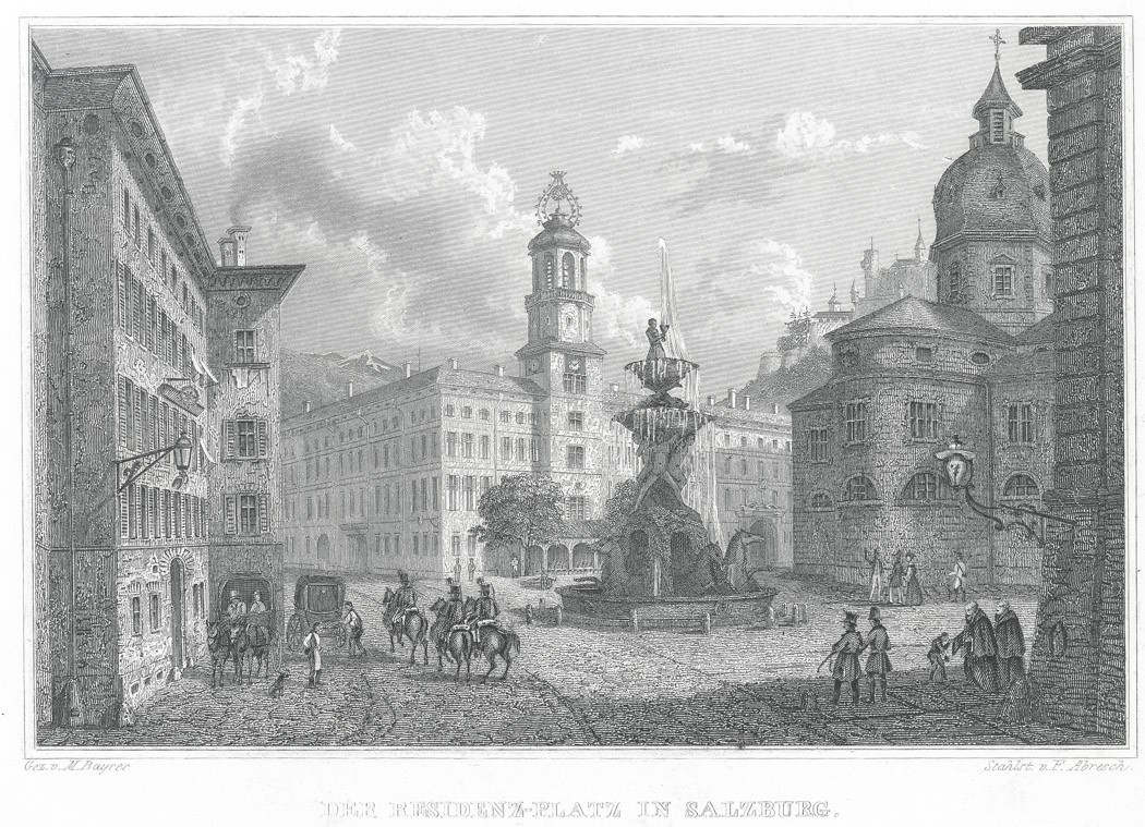 Salzburg Residenz Platz, Lange, oceloryt, 1840
