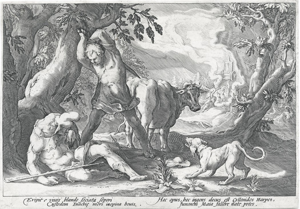 Merkur vraždí Arga, Goltzius dílna, mědiryt 1589
